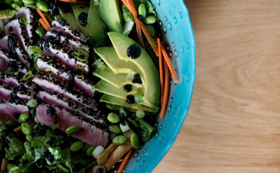 - Sallad med avokado, rostade pumpafrön och kokt ägg