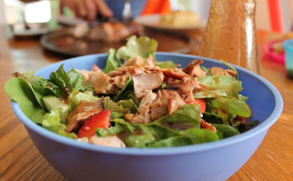 - Sallader: Blanda olika blad, grönsaker, frukt och en proteinkälla som kikärtor, bönor eller ost.